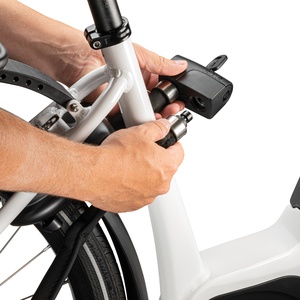The foldable lock is available with a neopreen sleeve in the color black and can be easily transported in the nice - non ratteling - holder which can be mounted to the frame.