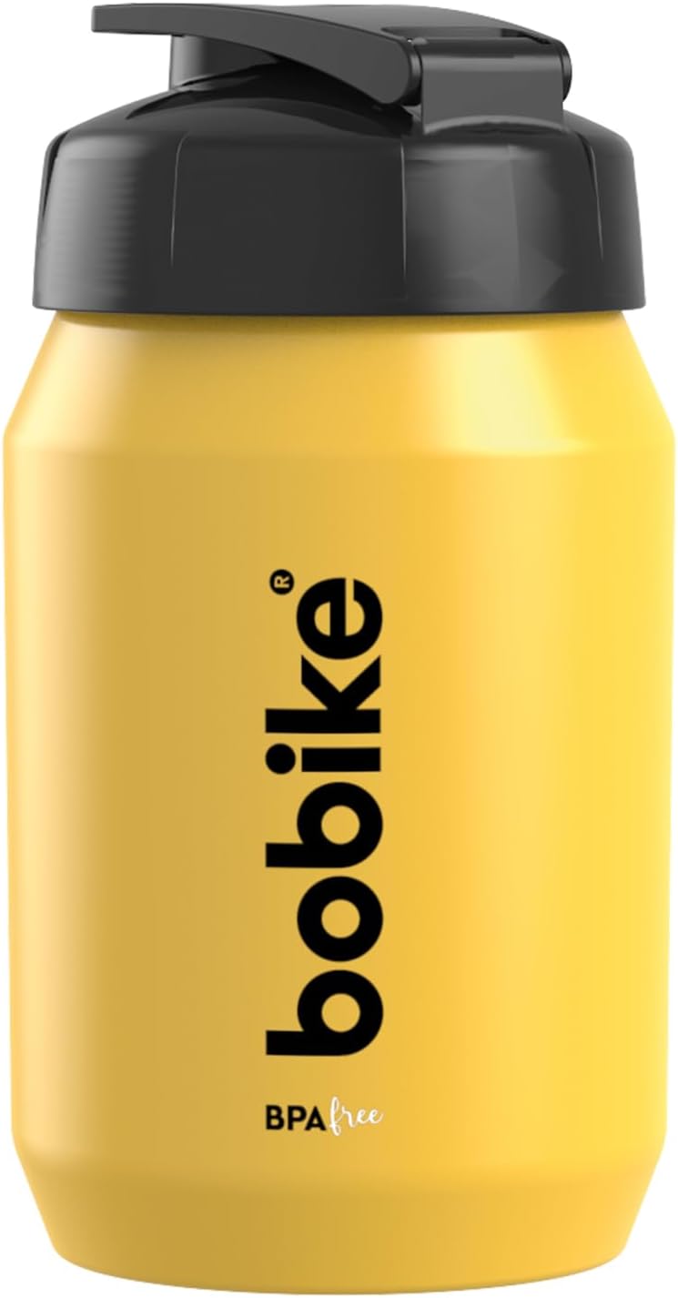 The Bobike Bottle ONE for Children – 450 ml (Yellow/Black) is a lightweight, child-friendly water bottle designed for young riders. Made from BPA-free plastic, it features a soft, squeezable body that fits comfortably in small hands.