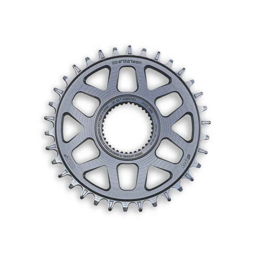 The Helix Race e*spec chainring delivers cutting‑edge performance for Avinox‑powered e‑MTBs. Forged and CNC‑machined from premium 7075 aluminum, it offers exceptional stiffness, low weight, and long wear life, all wrapped in a refined Sterling Silver finish. Designed as a high‑end upgrade, it pairs perfectly with Helix Race Alloy e*spec cranks for a clean, integrated look.